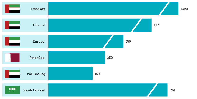 The Middle East district cooling industry is becoming increasingly competitive, with both established players and new entrants contending for market share in the region's swiftly transforming energy landscape. Some leading companies of the region are Tabreed, Empower, Qatar Cool, Marafeq Qatar, Emicool and Pal Cooling.